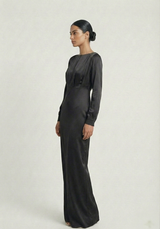 Sold outBlack Satin Modest Maxi Dress