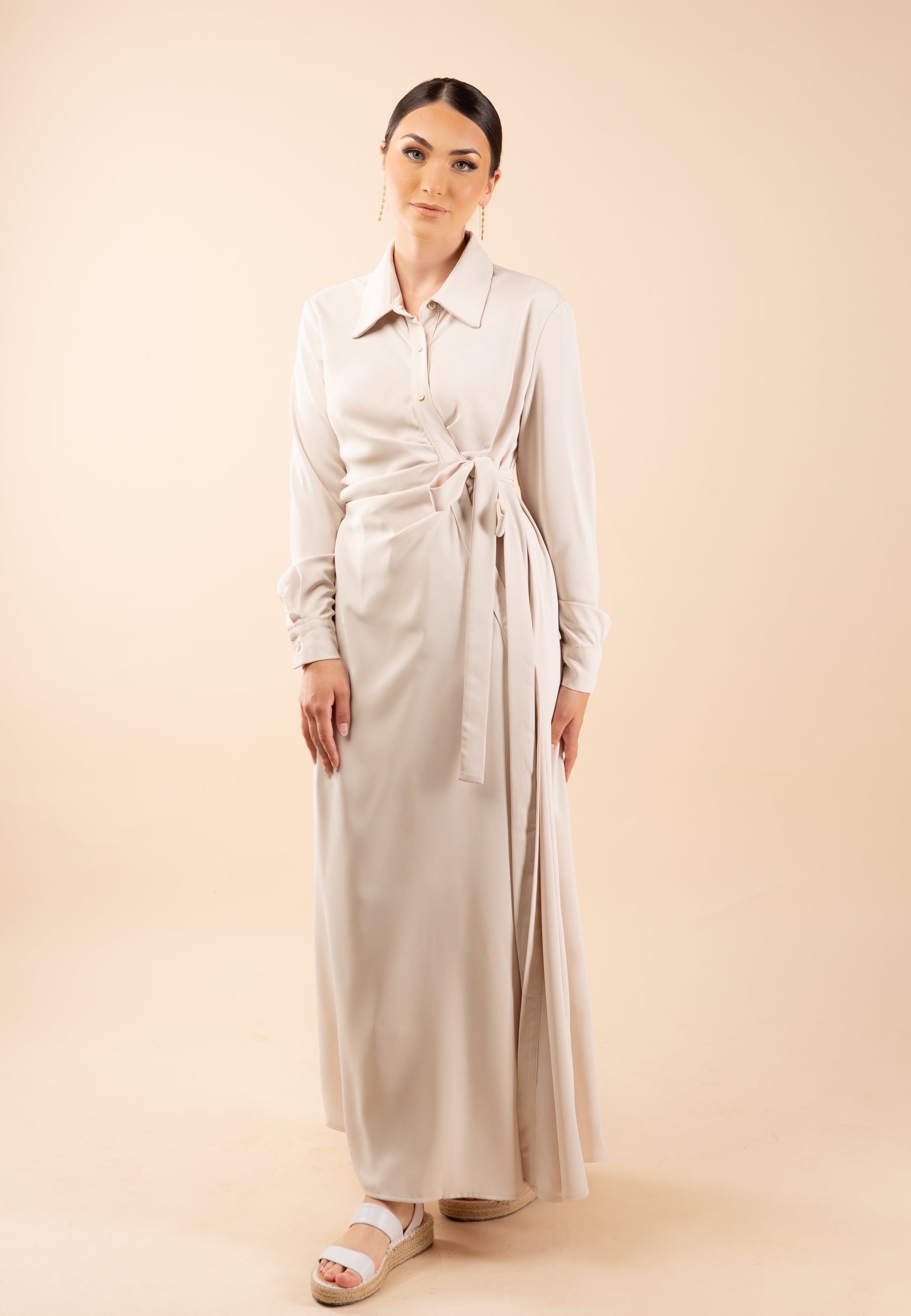 Celiana dress is timeless, classy and comfy. With the shirt collar design and the side tie, the Celiana dress gives the unique fancy look that can be worn day and night, to dinners, picnic and daily activities.