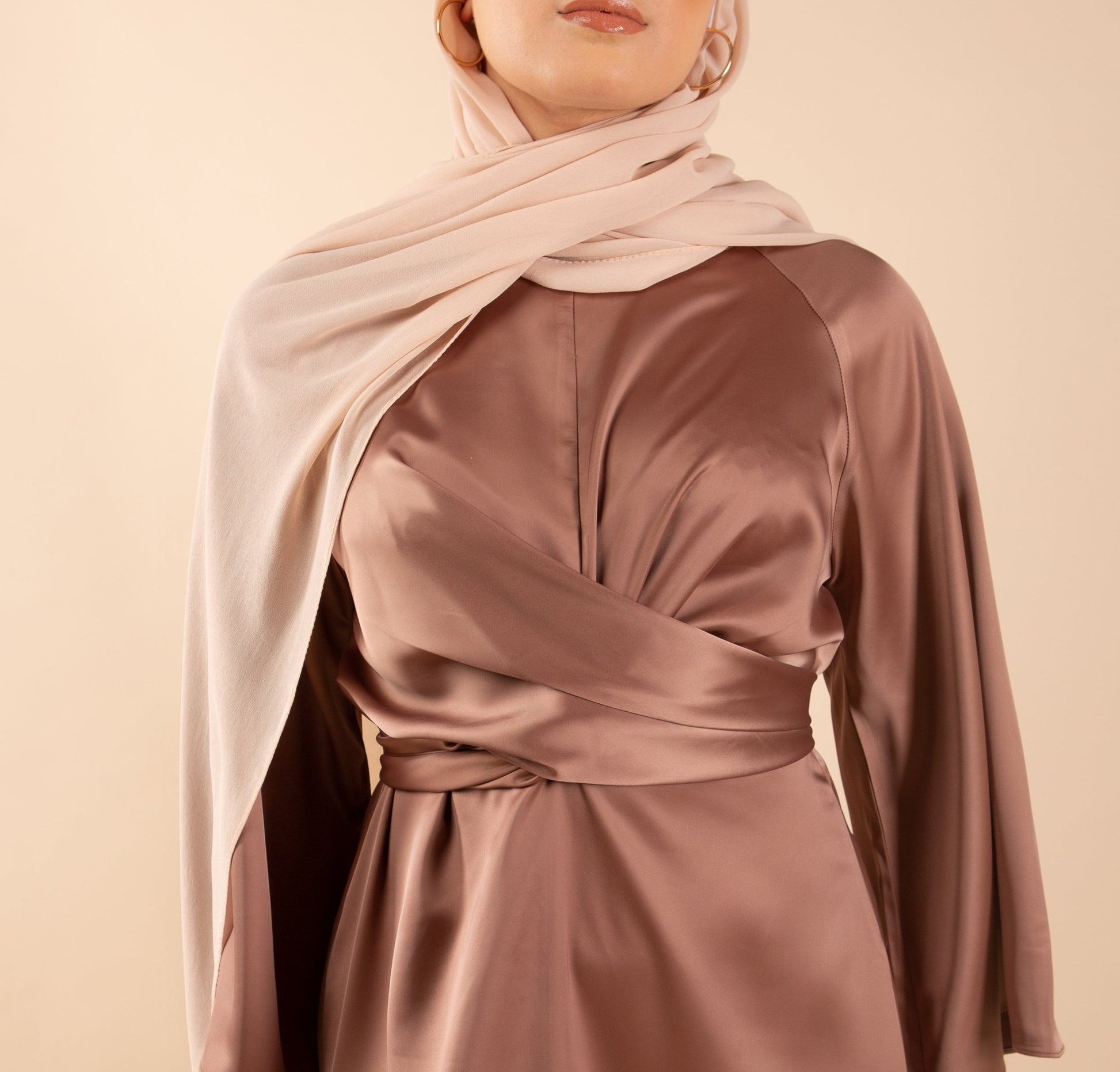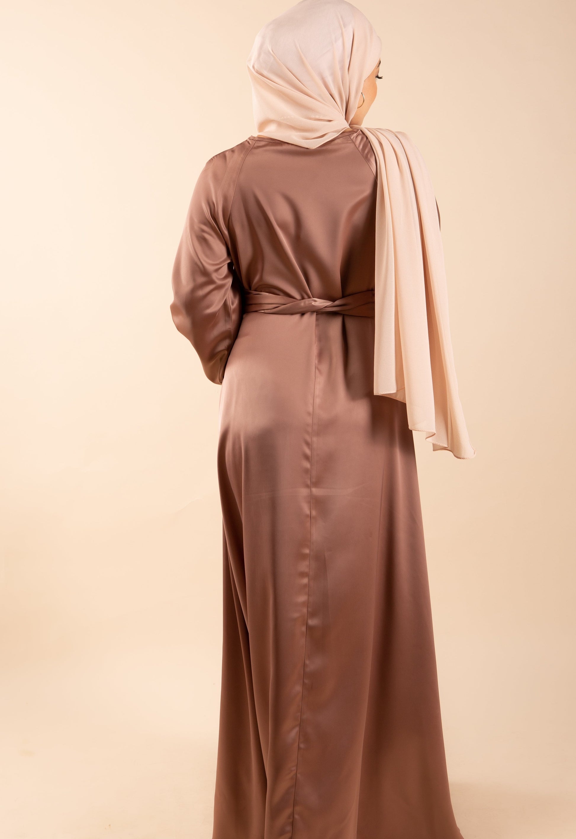 The Azalea Tie satin Maxi dress is designed to match all body types with modesty. It makes you feel luxuries and elegant with its mid-waist Tie. You can style the tie to the front or to the back to alternate between styles. Its sleeves flow beautifully simulating a kimono effect.